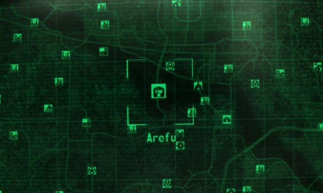 ↑Fallout 3 Official Game Guide Game of the Year Edition p.350: "5.07: AREFU (LAT -11/LONG 06) General Notes Arefu is a modest settlement perched atop an old freeway bridge spanning the Potomac River. The residents of Arefu destroyed the north ramp leading to Northwest Seneca Station to better protect themselves from Slavers. Arefu is the last stop on most trade caravan routes traveling from Megaton. The only approach is from the south, up the ramp." (Fallout 3 Game of the Year Edition Tour of the Capital Wasteland)