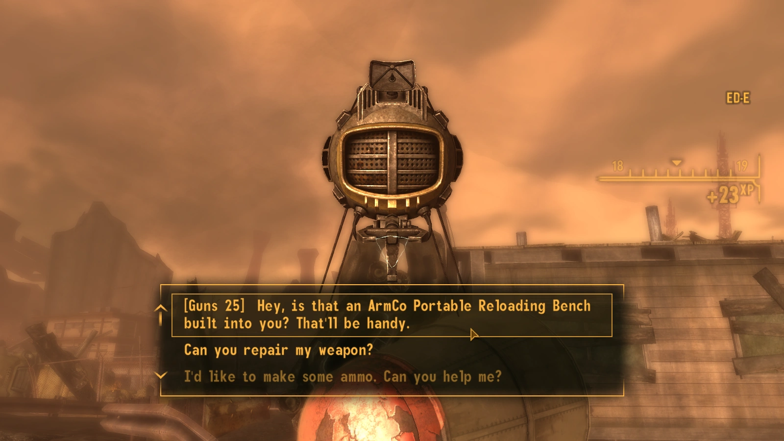 ArmCo's Portable Reloading Bench appears in Lonesome Road, as one of ED-E's integral components.