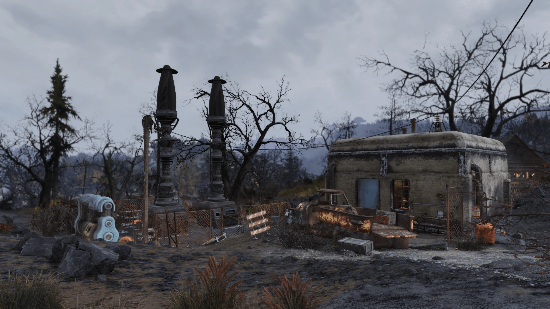 The ash forges are not currently implemented in the game as a working feature: Players can access the terminals located at each of the Hornwright Air Purifier Sites across the Ash Heap, but they will remain inert. The original plan intended for players to crack the locked terminal at Hornwright Industrial Headquarters, gaining access to the ash forge system, and activating the Old Flames quest, during which they'd be required to activate the forge, deposit "precursors" at target burn sites, and then harvest the raw materials from the air. The quest was ultimately cut, but the forges were left in the game as one of several examples of Hornwright crimes against reason and the environment.