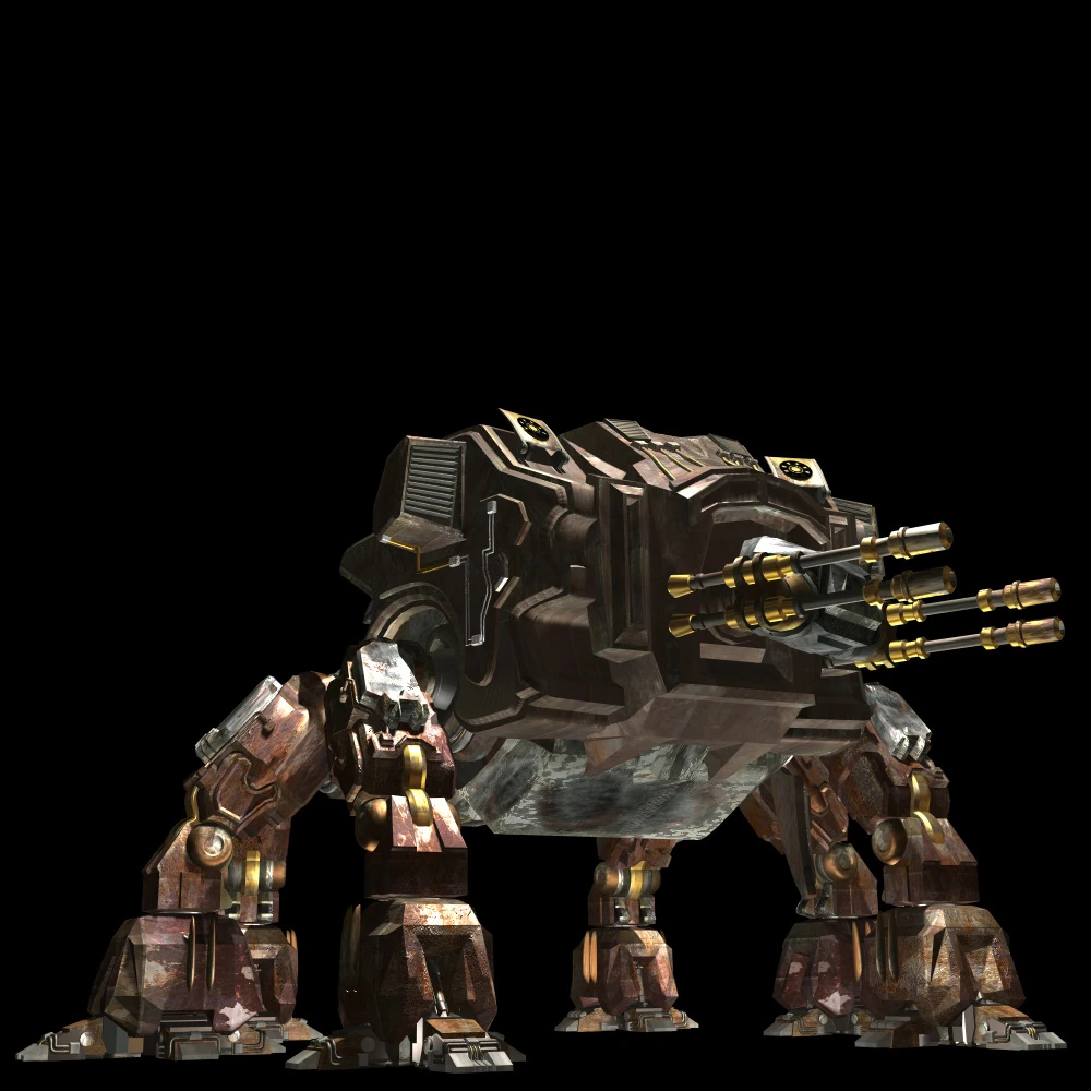 The behemoth is a classic heavy walker, with six legs and four .50 caliber machine guns mounted on its "head" that it can use to devastating effect against nearly every target that comes in it sway.