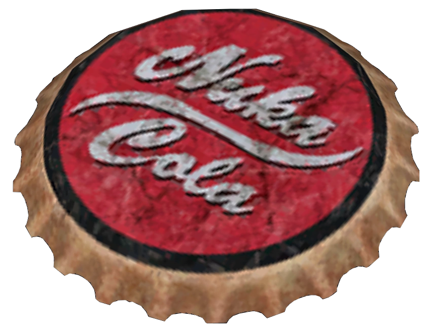 Standard Nuka-Cola bottle caps featuring 21 crimps and ridges, used as the basic form of currency throughout many of the American wastes. Their value differs throughout the game, as in Fallout: New Vegas they don't appear to be worth as much as in Fallout 3.