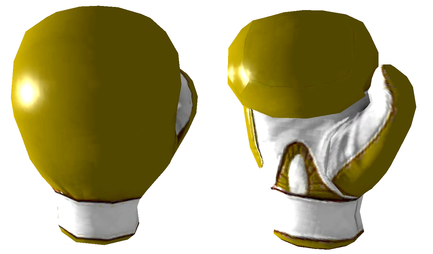 A pair of golden boxing gloves and a superior version of the brown boxing gloves, keeping the same principle but with greater effect.