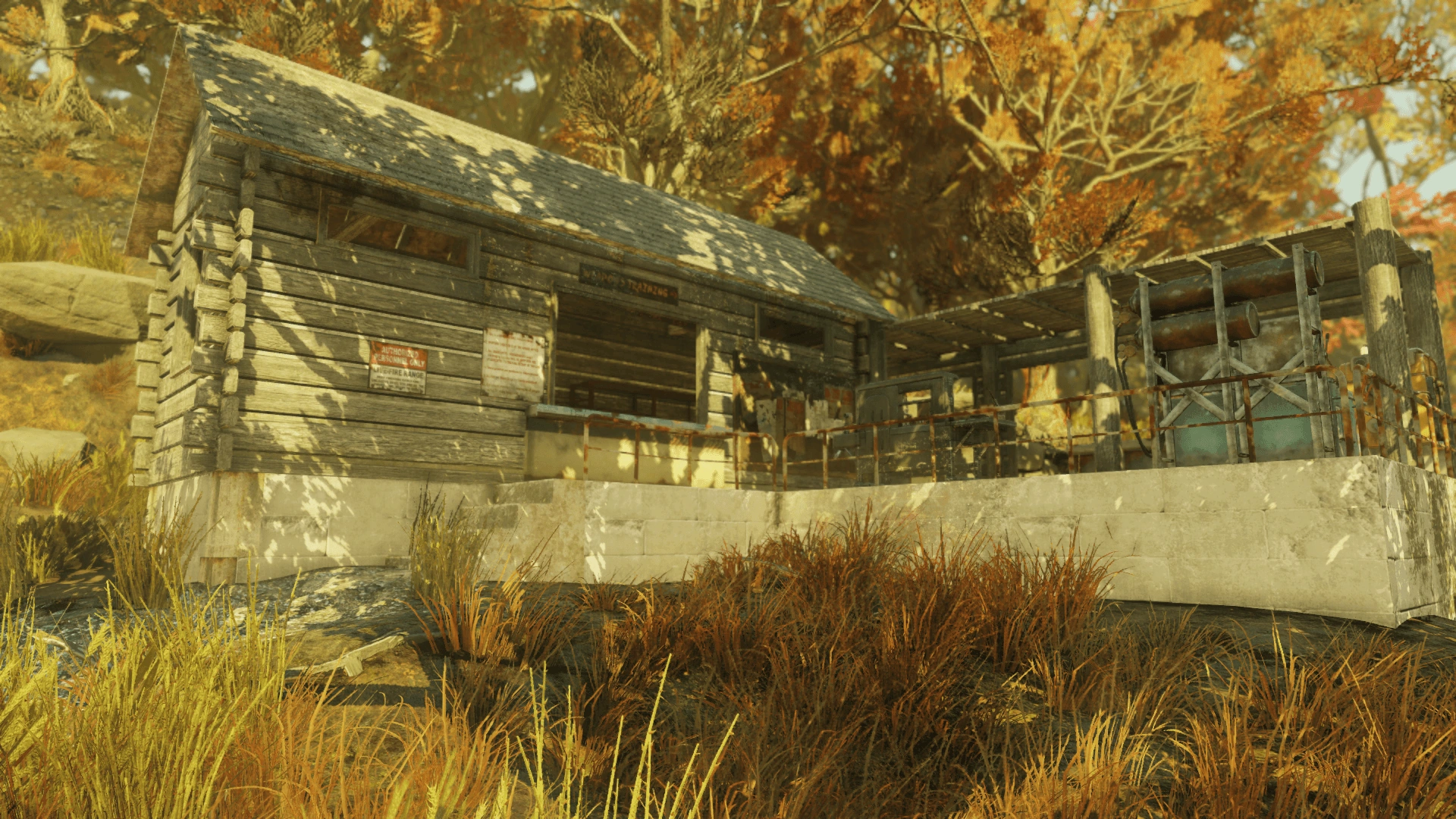 Camp Venture was known before the war for its extreme survival training. Known as VEST (Virginias Endurance and Survival Training), ran by Edward Hayes Jr., a Free States member. The intense training course lasted four weeks, with attendees working on their cardio, strength, and learning numerous skills, including building fires, cleaning water, establishing shelter (week 1), handling firearms, field dressings, safety against poisonous flora (week 2), wilderness navigation, first aid, and signals (week 3). The final week was essentially an examination, where attendees applied the skills they learned in practice. Hayes used the facilities to train members of the Free States, including Raleigh Clay and his family, in preparation for the nuclear war. When the Free States seceded from the United States in late 2077, Hayes mothballed the facility and retreated to his bunker.[1]