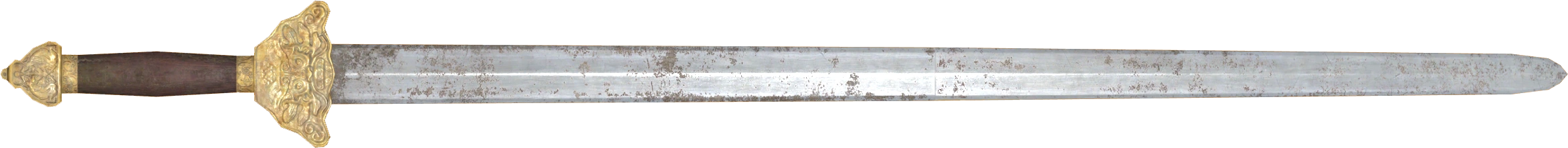 These swords are made in the style of 7th century Jian double edged straight swords. Produced by the People's Liberation Army specifically for use by its officers and issued in the Sino-American War, many were captured and came to the American home front as souvenirs – some even found their way into fifth columnist hands. Since the Great War, these weapons have become an uncommonly used by wastelanders and raiders alike.