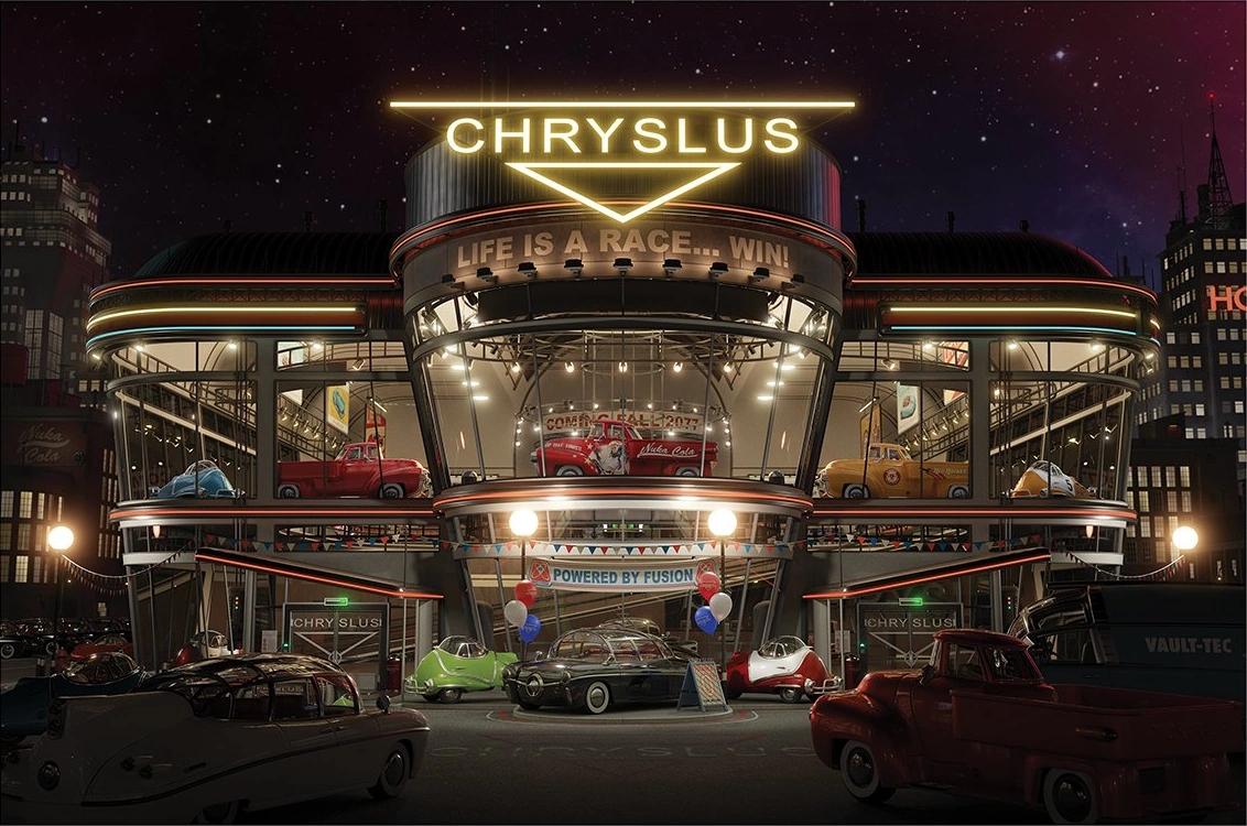 Chryslus's core technology, the V8 diesel-fusion engine, was used widely in its vehicles, from Corvegas to the heavy duty Pick-R-Up and Nuka-Cola delivery trucks.