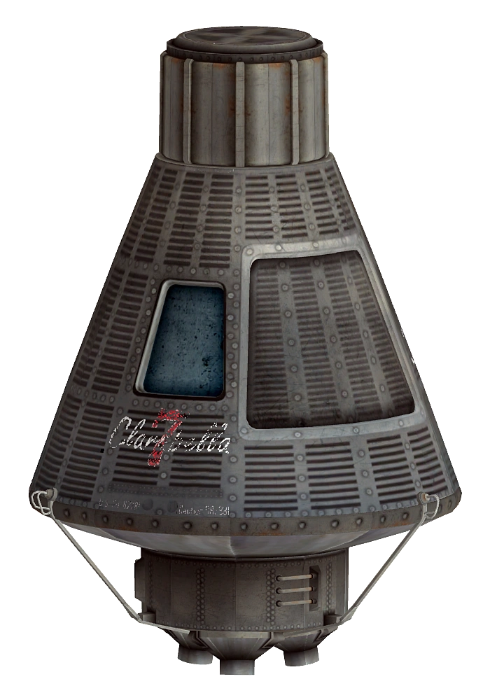 Clarabella 7 was the United States Space Administration space capsule flown by Colonel Hartigan, USAF. Like its ill-fated pilot, the capsule is still aboard Mothership Zeta. It is on display in a lab off the main Hangar.