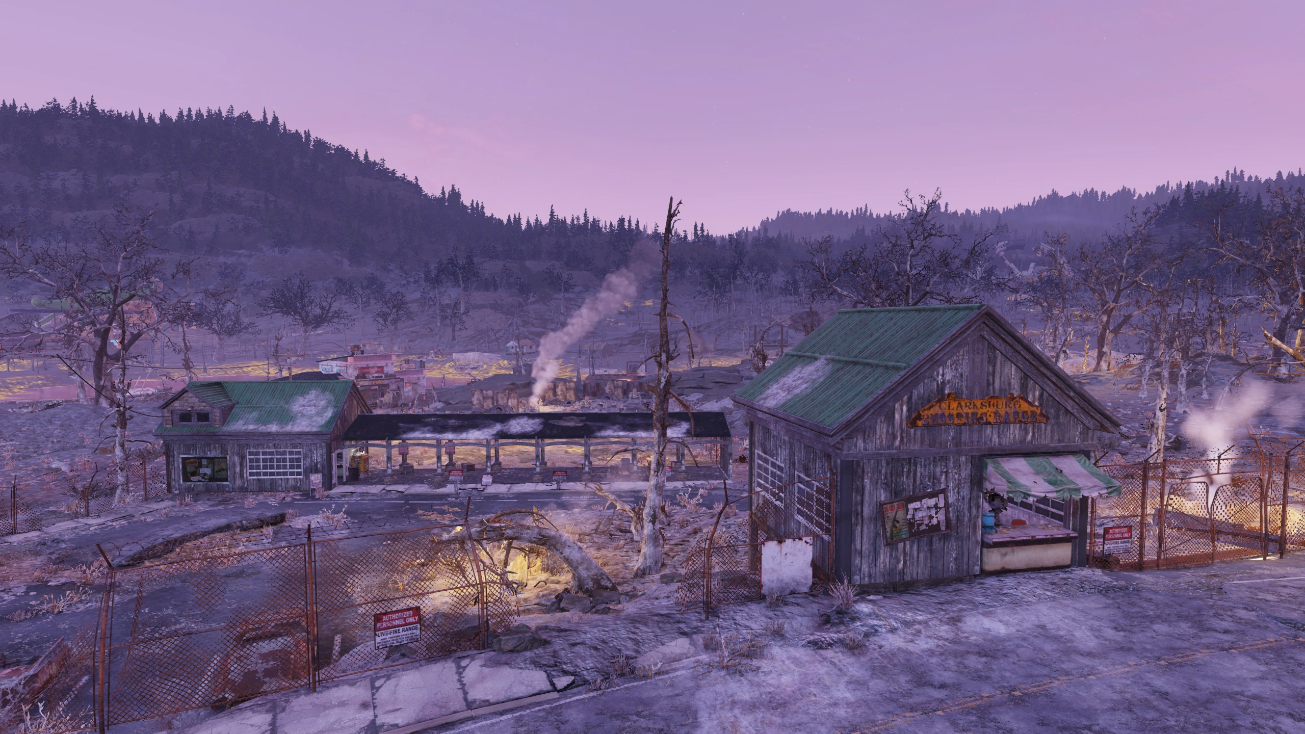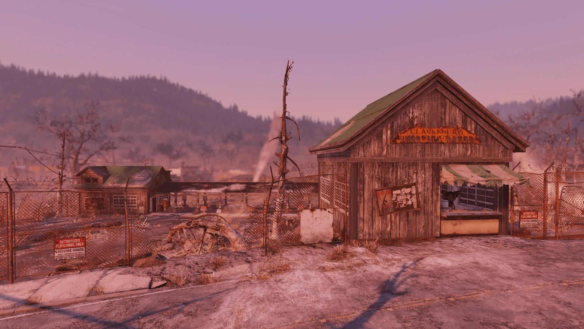 The location has multiple Clarksburg brew bottles that can be collected for the Bureau of Tourism mission. Inside the building, there's a weapons workbench. Outside, there's an Ammunition Vending Machine, next to the shooting range and parking lot. The Daily Event: Target Rich Environment can be started by talking to the Shooting Range Attendant at the front office.