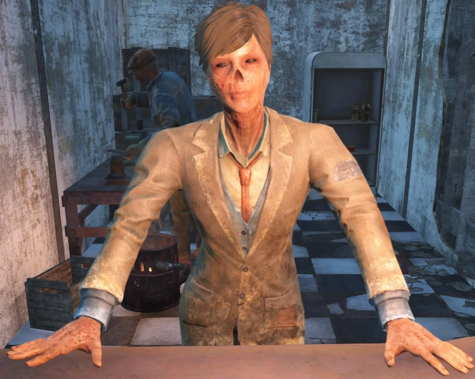 ↑The Sole Survivor: "Ghoul? What's a Ghoul?" Daisy: "You're looking at one, sweetheart. Didn't have any shelter to go to when the bombs fell. Radiation's kind of the ultimate makeover.Done wonders for my skin. I look pretty good for being 220 years old. Now, you buying anything?" (Daisy's dialogue)