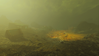 Nothing remains of blasted factory in the Glowing Sea, other than twisted steel and severely radioactive ooze, which peaks around 75 rads per second.