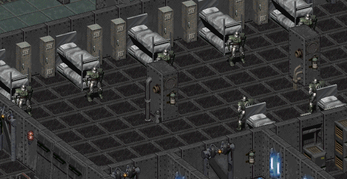 All soldiers begin their careers as recruits and these are still at that stage. Wearing old suits of T-51 power armor, they are training in preparation for deployment under the watchful eye of their superiors. They also help in magazine work and other heavy duty assignments where their powered combat armor comes in very handy.