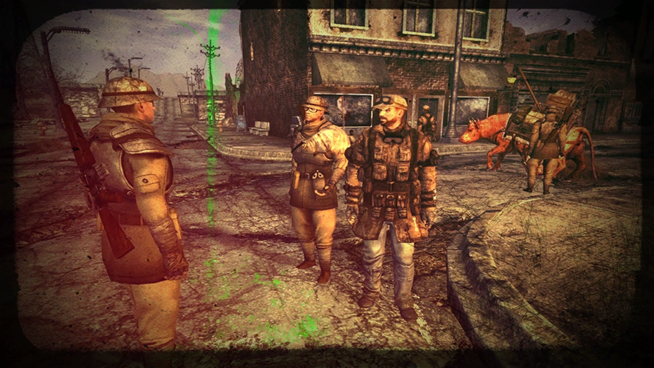 Due to their temporary truce, the Brotherhood allowed the NCR to retreat from the Mojave Wasteland without incident. In the relative peace that followed, Brotherhood patrols appeared along major roads, harassing travelers over any bits of technology they had. |