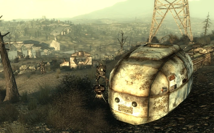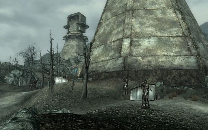 | VAPL-84 power station | Looking northeast, just beyond the collapsed highway, a Vertibird dropped off 2 Enclave soldiers, one in standard Enclave power armor and another in Tesla armor. They proceeded to head down an incline and set an ambush behind a pillar of the collapsed highway. | |