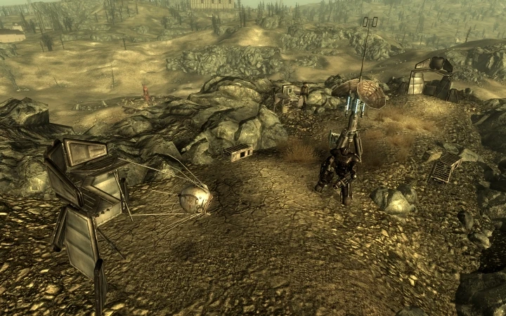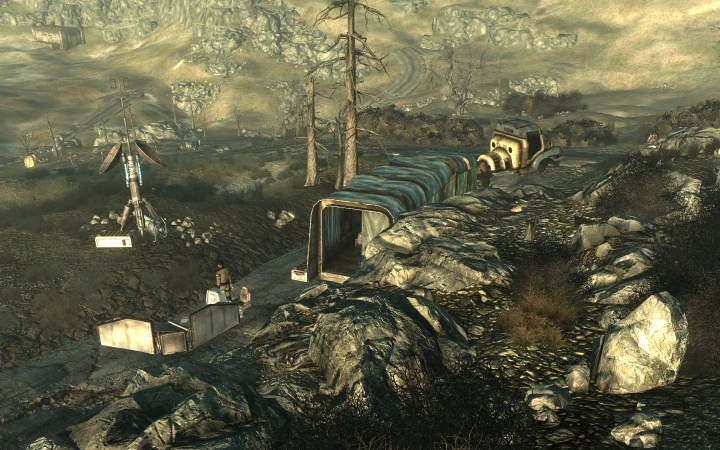 - At some places, the outposts are completely overrun before the player arrives. For example, At yao guai tunnels there are remains of an outpost littered around the nearby area, presumably destroyed by the yao guai. Also, there is an outpost near the Chryslus building which is unmanned and covered in raider graffiti, with some raiders nearby using Enclave equipment.