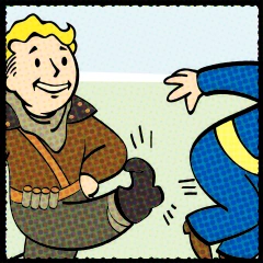 Vault Dweller | Equip Vault 88 suit and Pip-Boy on a settler. |