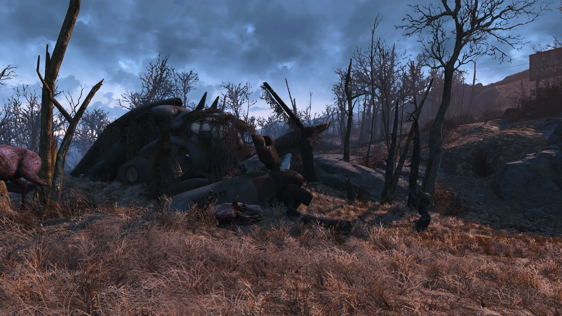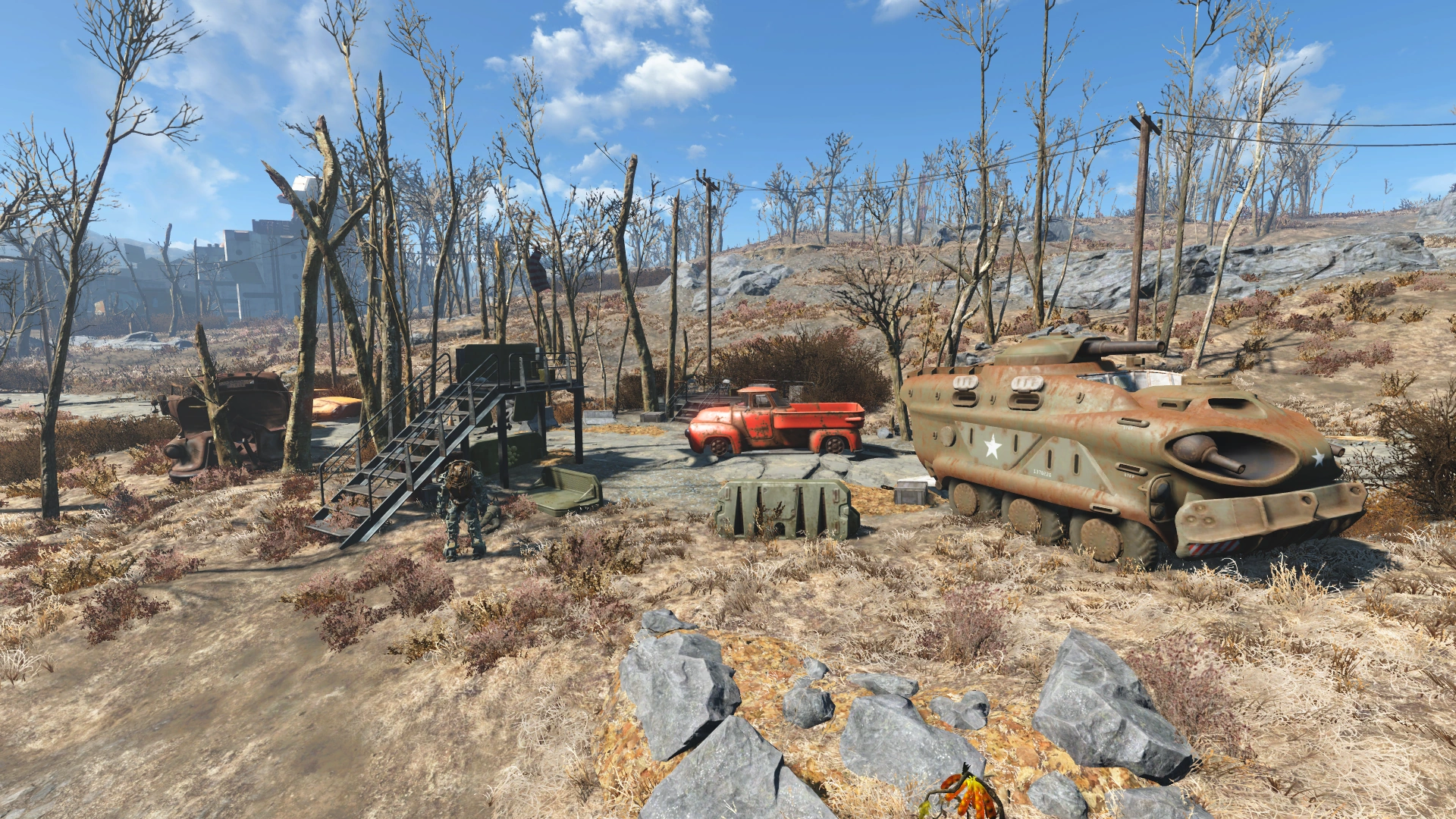 A raider spawns at the bottom of the quarry wearing T-51 power armor (potentially different levels available here).