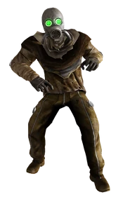 - A green gas effect similar to the "breath" from their masks is set to happen on the two vent ports on the legs of their suits, however, the effects for this are turned off on all Ghost People creature models.