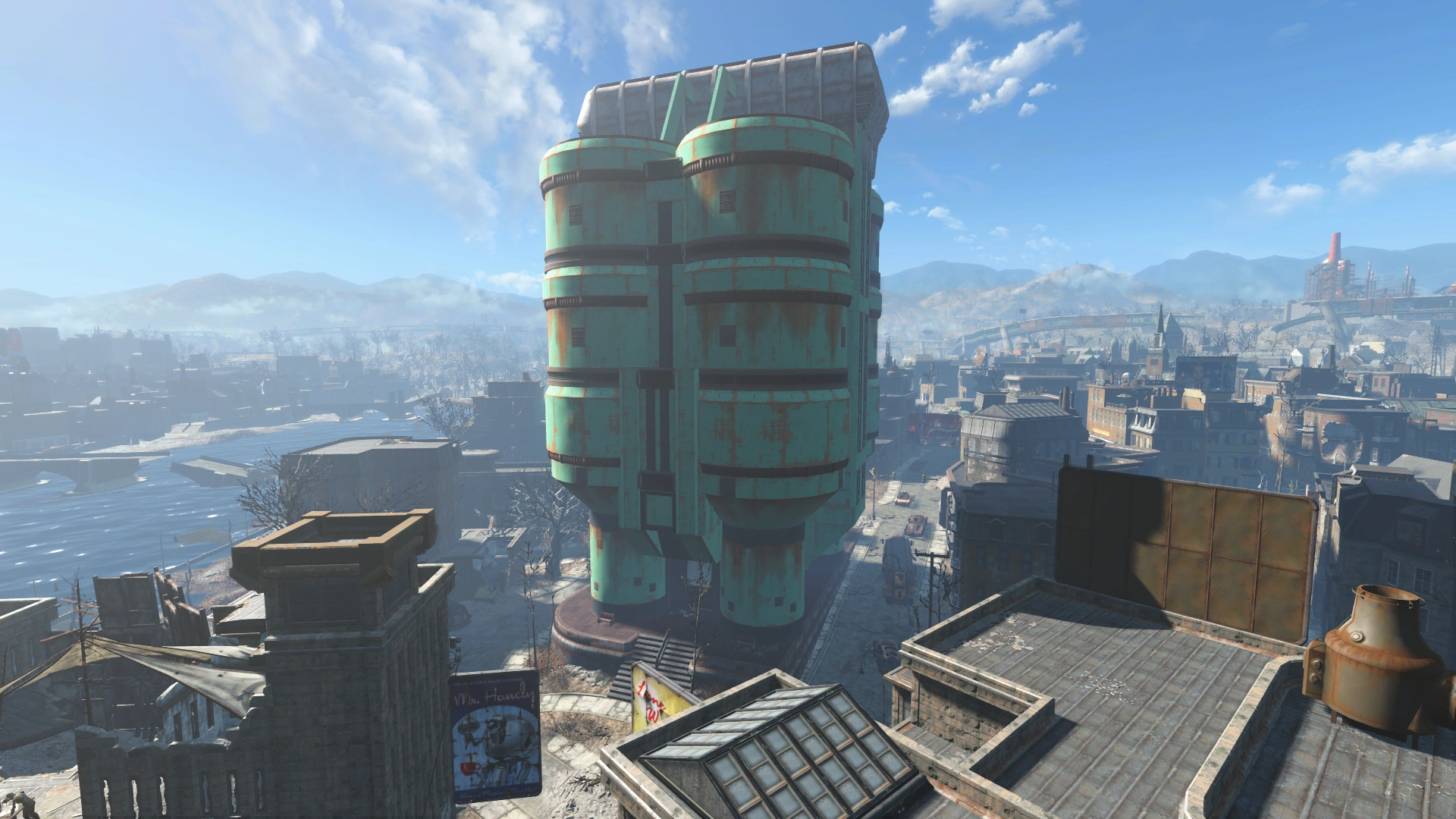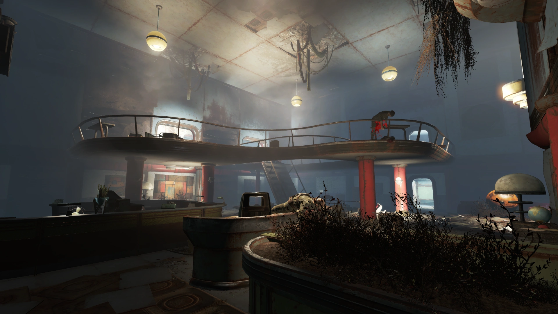 Afterwards, the quest completes and The Molecular Level begins. The player can use the nearby terminal to unlock K1-98's room. The walkway with the Fat Man connects to the roof of the building, with a stunning view of the area and an ammo box with ammo supplies.