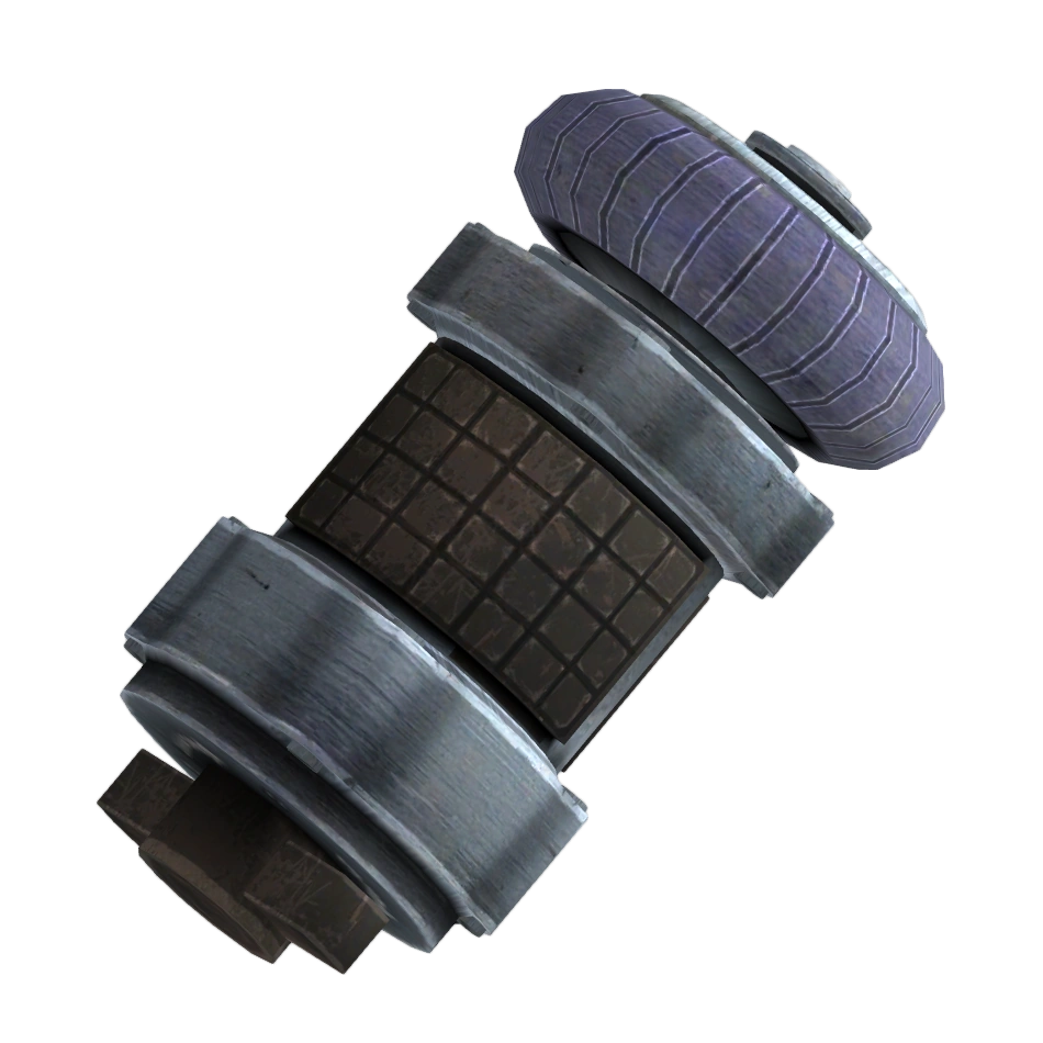 An electromagnetic pulse grenade, generating an intense magnetic field on detonation. Doesn't affect biological creatures, but is highly effective against robots and power armored foes. Contact fuze.
