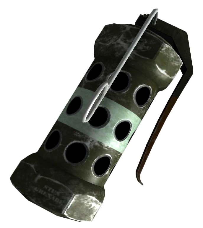 A grenade is a thrown weapon that appears in all of the Fallout games. Most contain an explosive payload designed to inflict damage in a wide blast radius. Certain grenade models are more effective against some targets, and less effective against others.