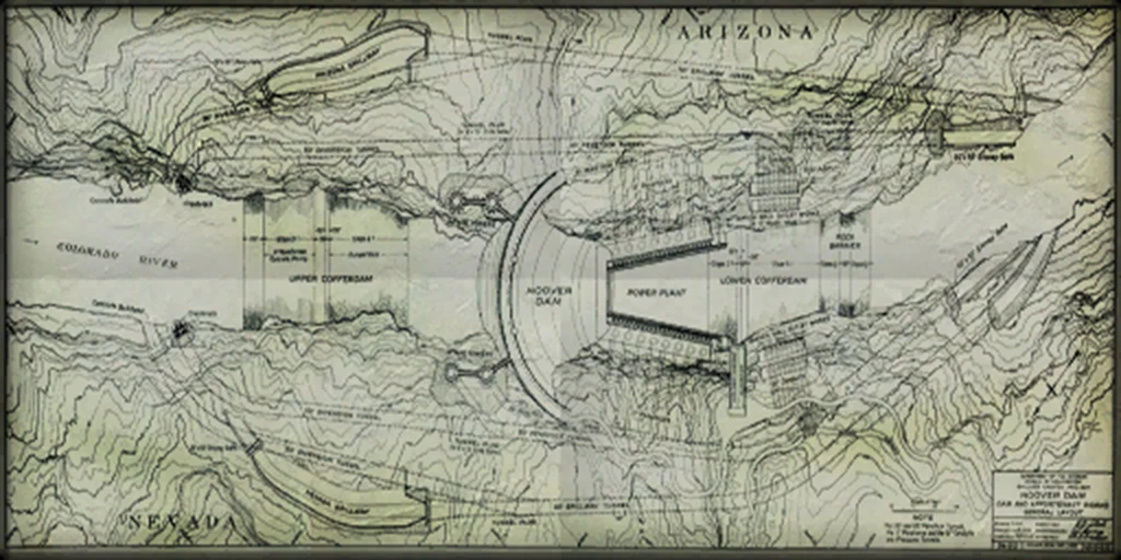 The map of Hoover dam found in the Camp Forlorn Hope command center and Caesar's tent.