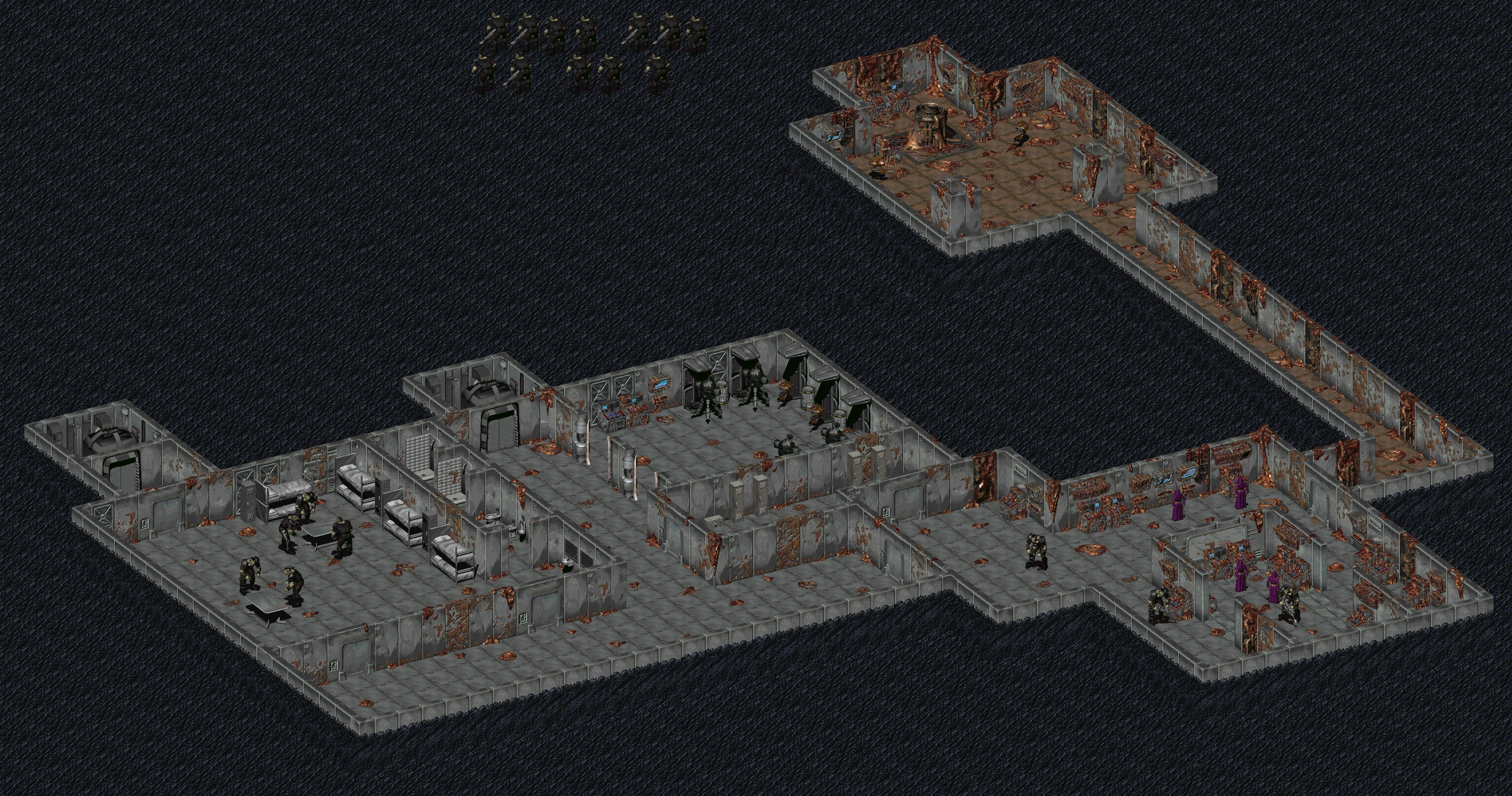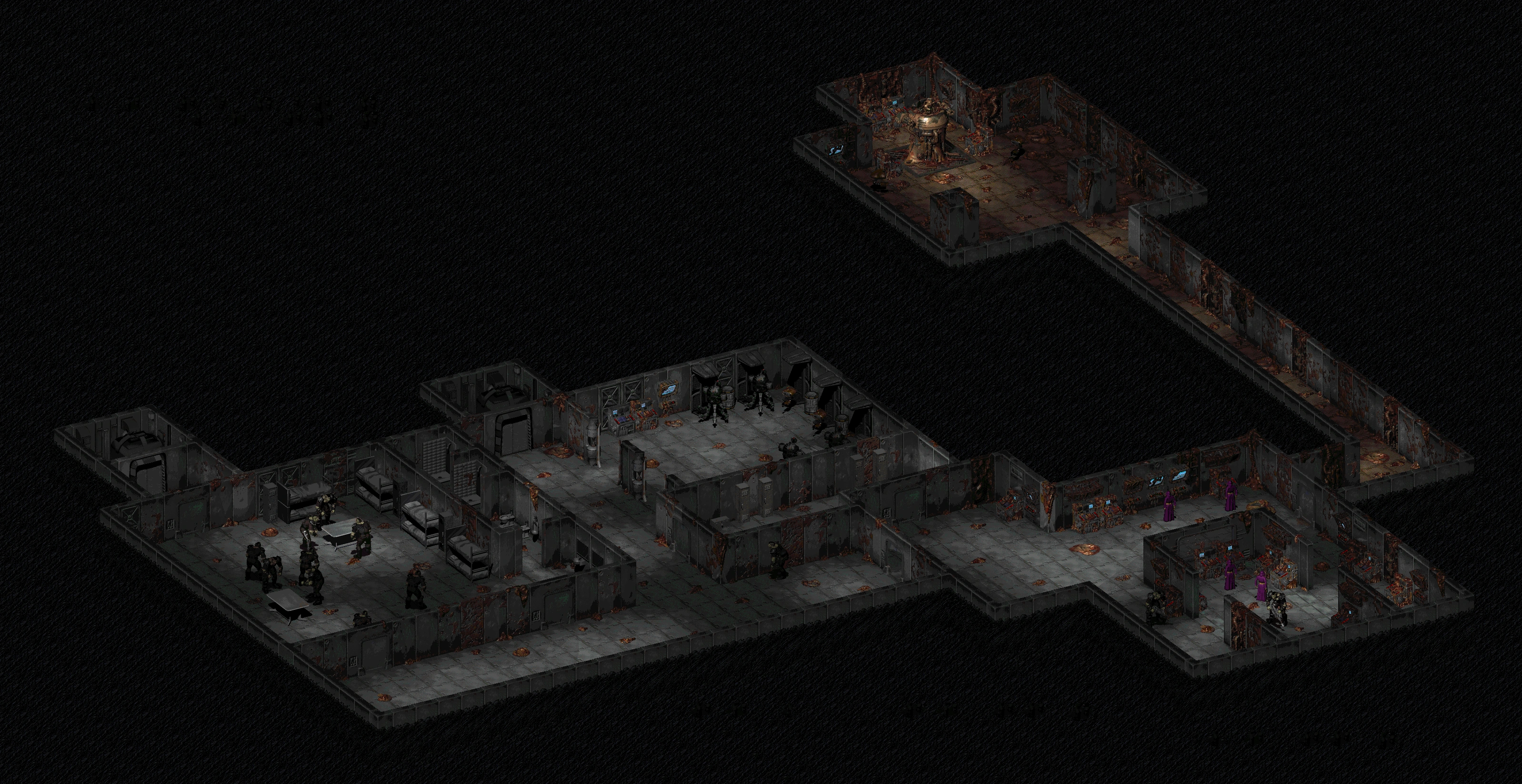 The second level houses the living quarters, and has more differences in design. The northern half of the living quarters is occupied by a large bunk room, a chapel (with black-and-white monitors), and a small room where the psykers, survivors of the Master's psionic research program, live. Gideon, one of the psykers, may provide the player with a psychic nullifier.