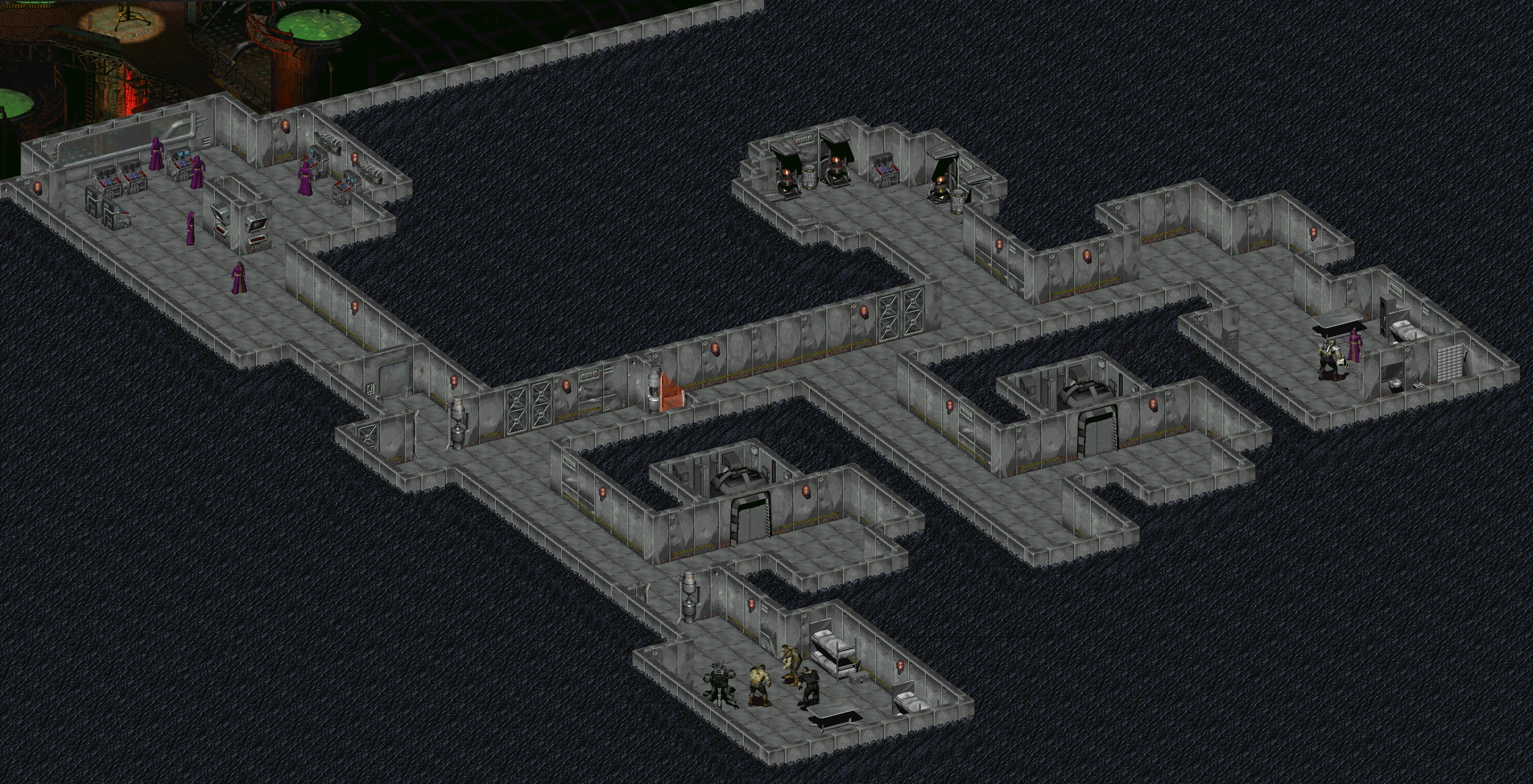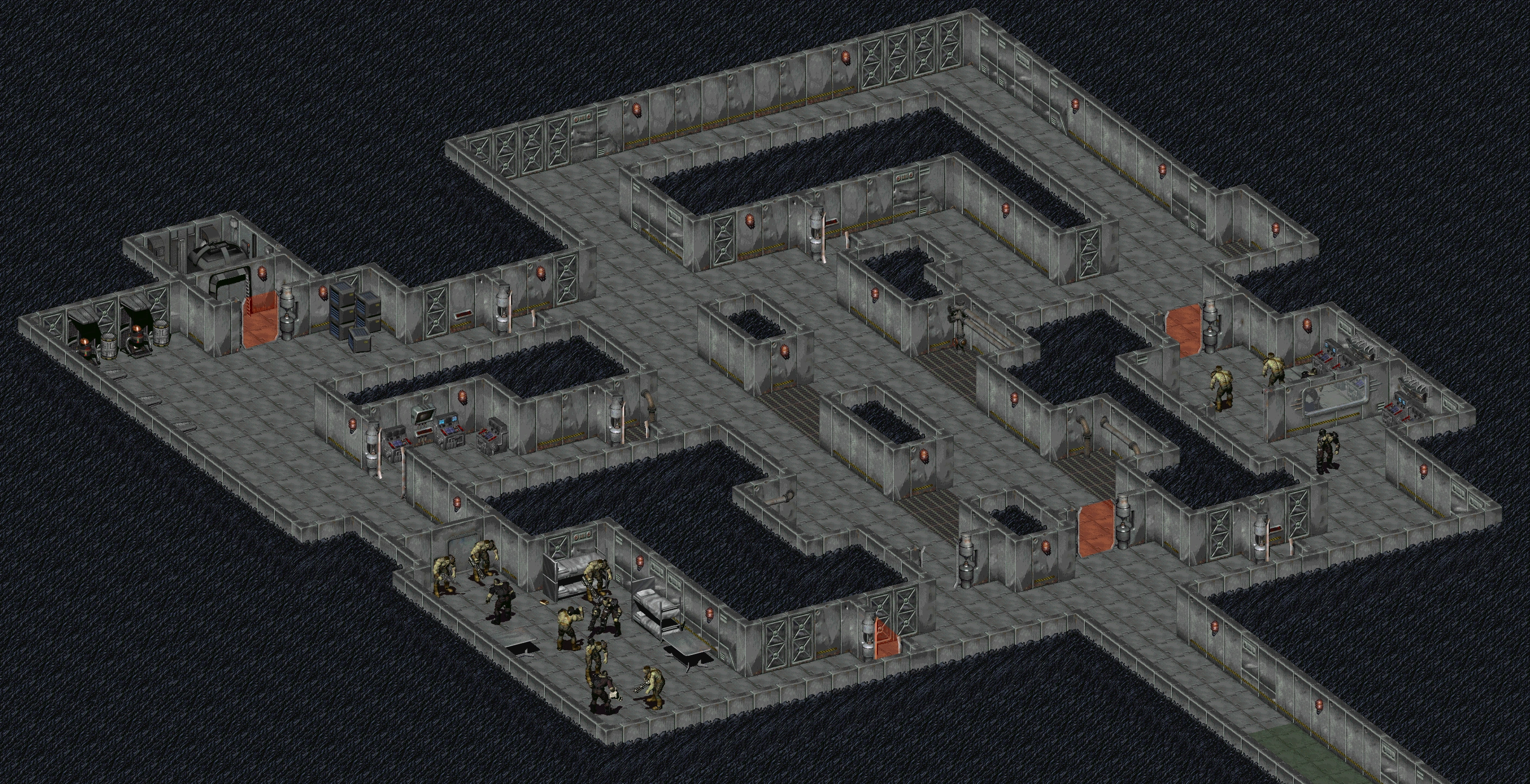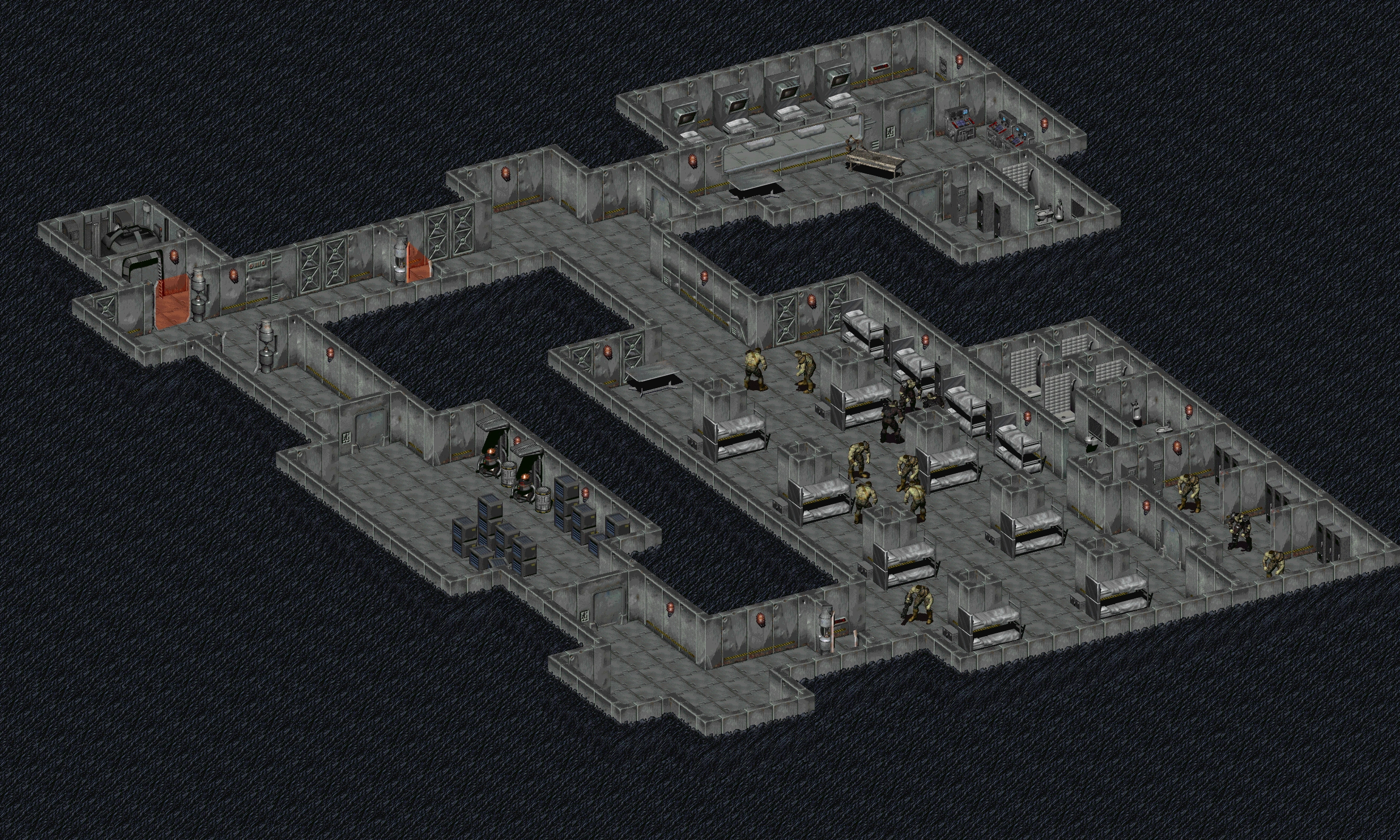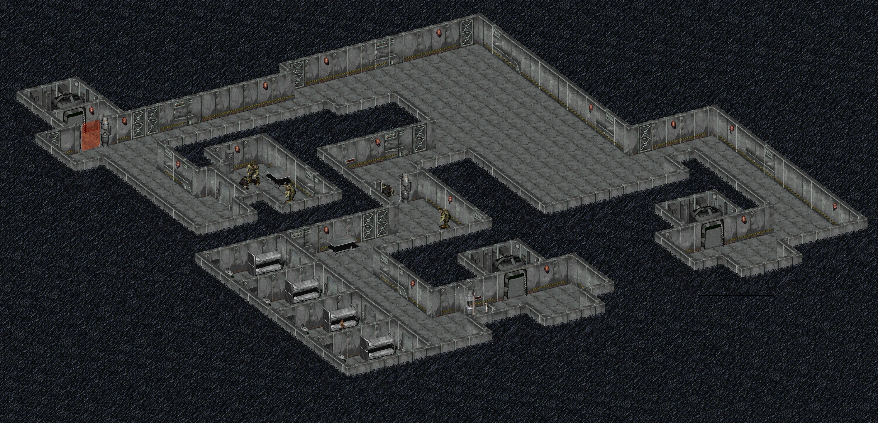 Together with the scientists' quarters (used around the Master's time to house the supermutant containment squad, Vat Team 9), it forms the top secret portion of the facility, accessible from the cell block block and kept off limits to soldiers before the war. The other, general access section of the level housed the central robot maintenance facility, as well as the base commander's quarters. Once used by Colonel Spindel, the spartan office was claimed by the Lieutenant during the Master's rise.