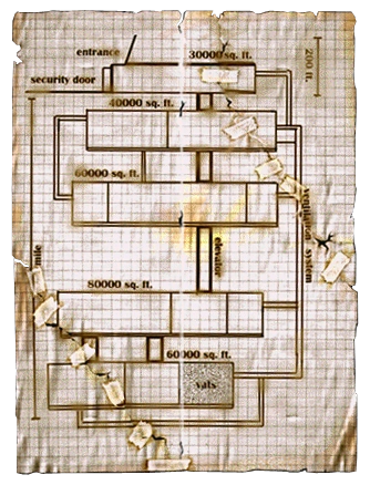 The first level of Mariposa housed the gear needed for any excursions, as well as a staging area for patrols. Oddly, the main control computers for the base's force fields and robotic guardians were located here, allowing any infiltrator to considerably sabotage the base, just by altering the Pest Control setting for the robobrains, in addition to altering the force field status remotely. Apart from that, guard barracks were located on this level, for off-duty surface security teams.