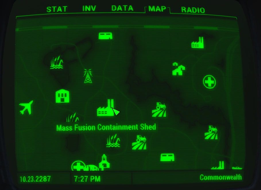(Fallout 4 Vault Dweller's Survival Guide Map) - ↑ Mass Fusion containment shed terminals; Supervisor's Terminal, 7/13