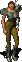 A crude suit of armor, consisting of polished metal plates[1] hammered to resemble a breastplate and pauldrons covering the chest, abdomen and shoulders, worn together with a pair of boots reinforced with metal plating. The three spikes mounted on the left shoulder are perhaps the most striking feature of this suit. Usually worn with light brown trousers.