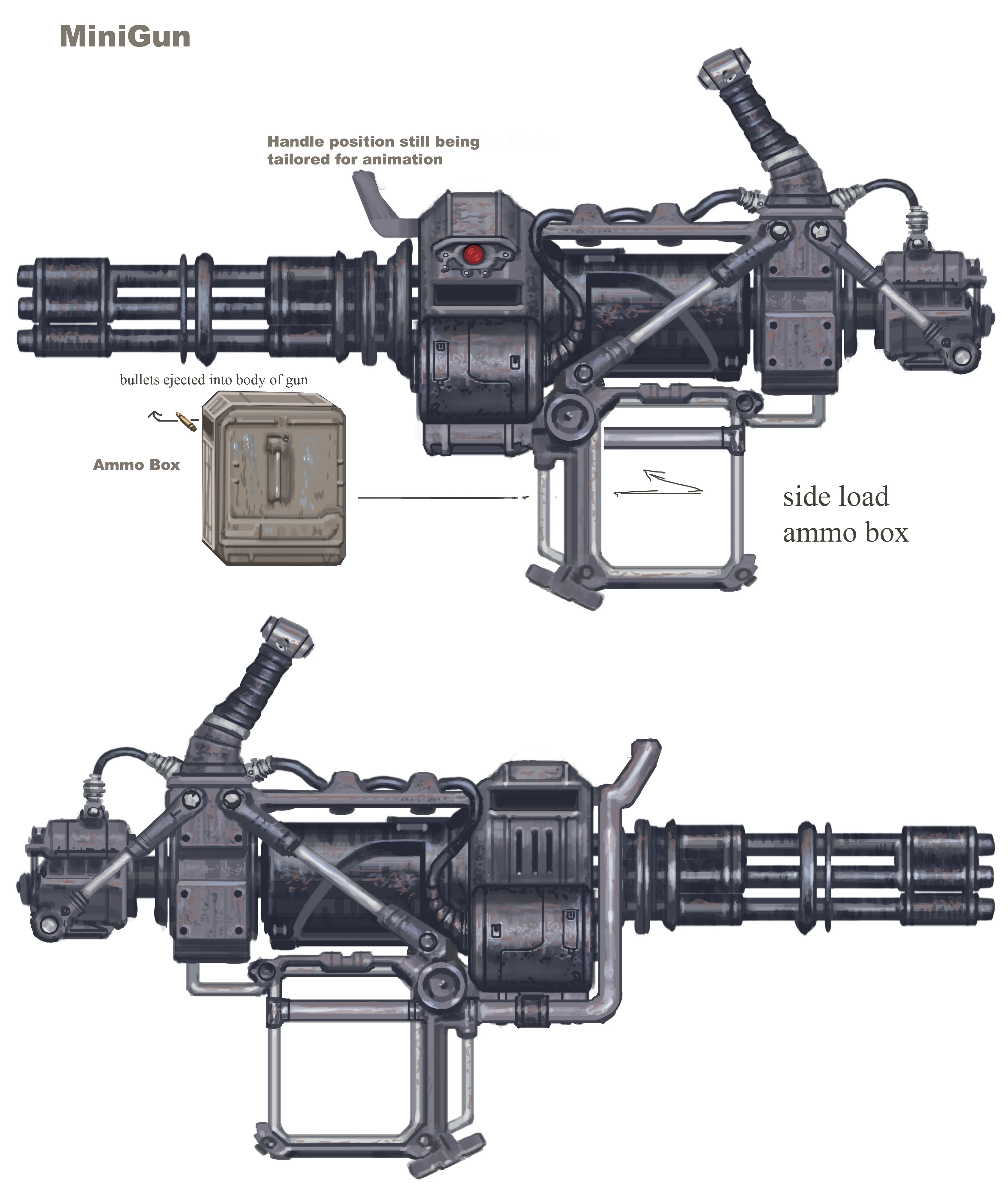 Brotherhood Outcasts occasionally hold the minigun like a rifle, without the ammunition box on their backs.