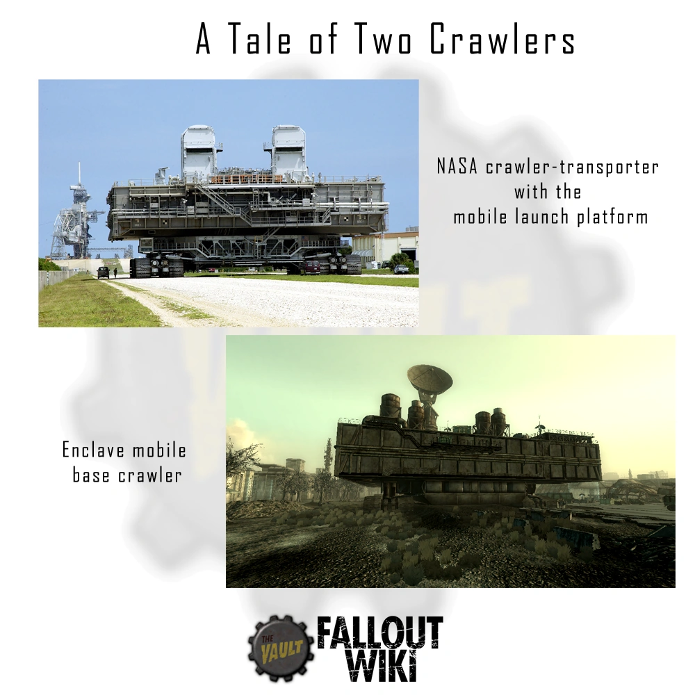 - The mobile base crawler is based on the real-life NASA crawler-transporter and Mobile Launcher Platform.[1]
