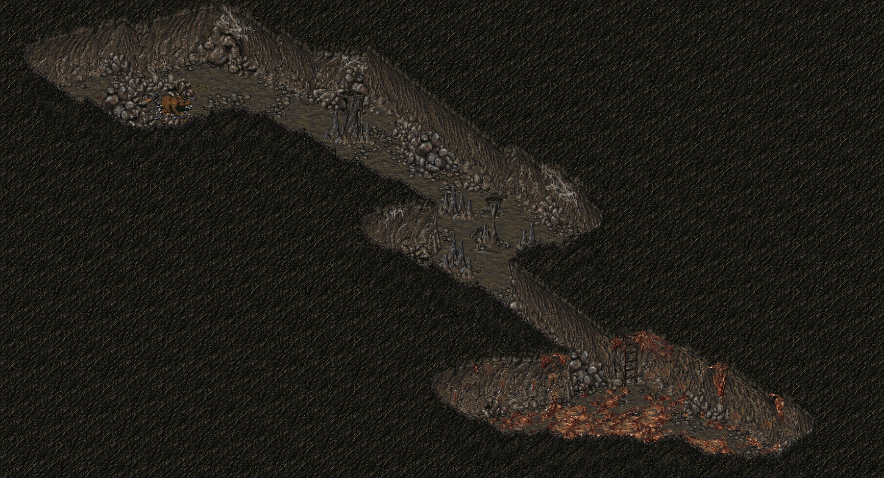 A huge cavern below the Modoc's toilet filled with goo, with a pile of rocks blocking the passage to the north to a mole rat lair. Within the cavern, there is an large amount of methane, so the smallest spark would blow it sky-high.