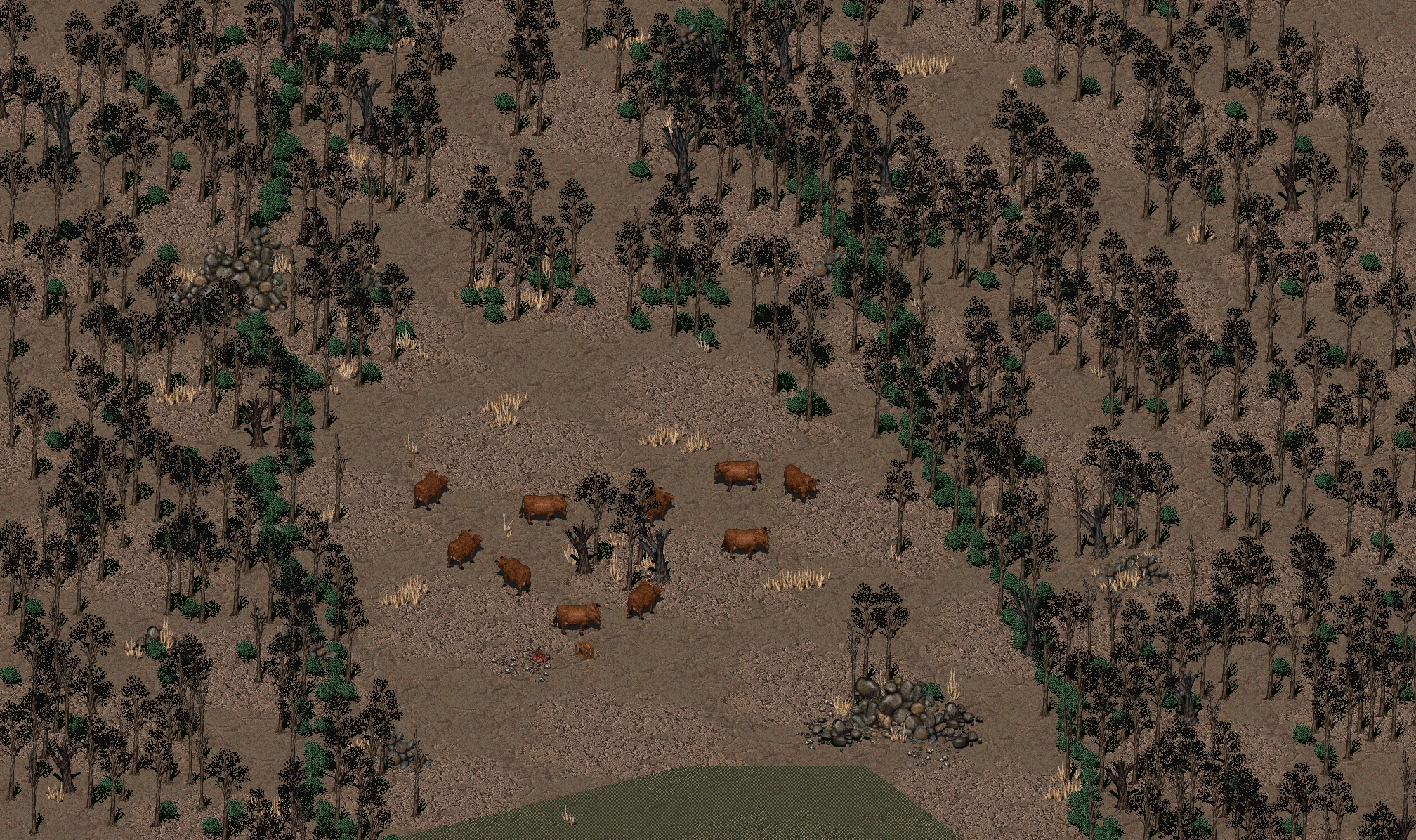 This location is only accessible during the quest "Guard brahmin herd for Grisham". It's a small brahmin pasture next Modoc owned by Grisham. At the moment the Chosen One enter in the pasture, some wild dogs want to kill the Grisham's brahmins for eat.