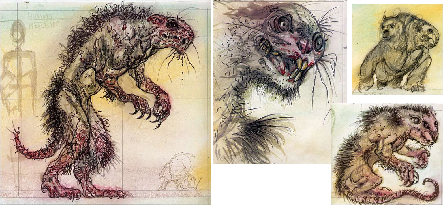 The mutated African mole rat is a creature with a complex history, developed for a covert U.S. bioweapon research project: Mission Cloacina. In order to undermine Chinese infrastructure, the naked mole rat would be tailored into a biological weapon, the Mutant Undermining Lifeform. When released into enemy territory, its aggressive qualities, hunger, and breeding rates would enable it to undermine local infrastructure. The MUL genetic design used rodent stock primarily, ranging from the common sewer rat, through the naked mole rat, to the African mole rat. A genetic kill switch was coded into their DNA, allowing the military to purge the MUL from an area in short order, only having to clean them up. The project's effectiveness against China is unknown. What's known is that the MULs escaped into the wild during the Great War, becoming a common pest across the United States.[1]