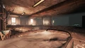 Outside, the recruitment office and barracks are connected by a hallway. To the north of these structures is a small concrete hut, and to the west is a similar hut and crashed Vertibird. Between the two huts, behind the buildings, is a cooking station.