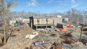(Fallout 4 Vault Dweller's Survival Guide Map) - ↑ Barricades at the entrance, dead soldiers, and the presence of cars parked everywhere over the front lawn).