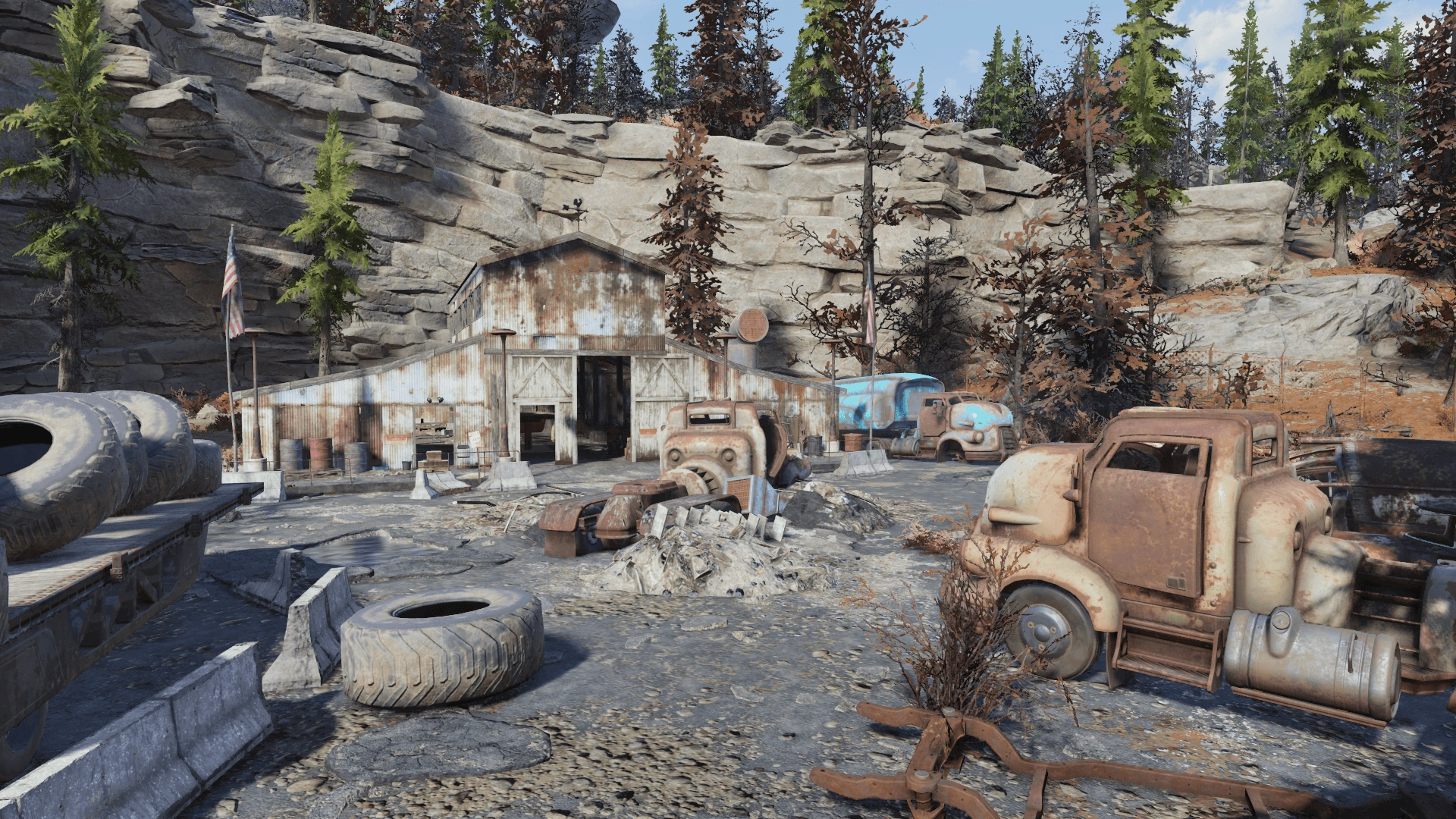 The maintenance warehouse to the northwest contains a power armor spawn point, a weapons workbench, and two more bobblehead spawnpoints. The locked shed in the loading dock is where the bobblehead can be found awd can be opened with a key found in the office building (upstairs, southern office). The other is in the main building, up the on the catwalk shelves.
