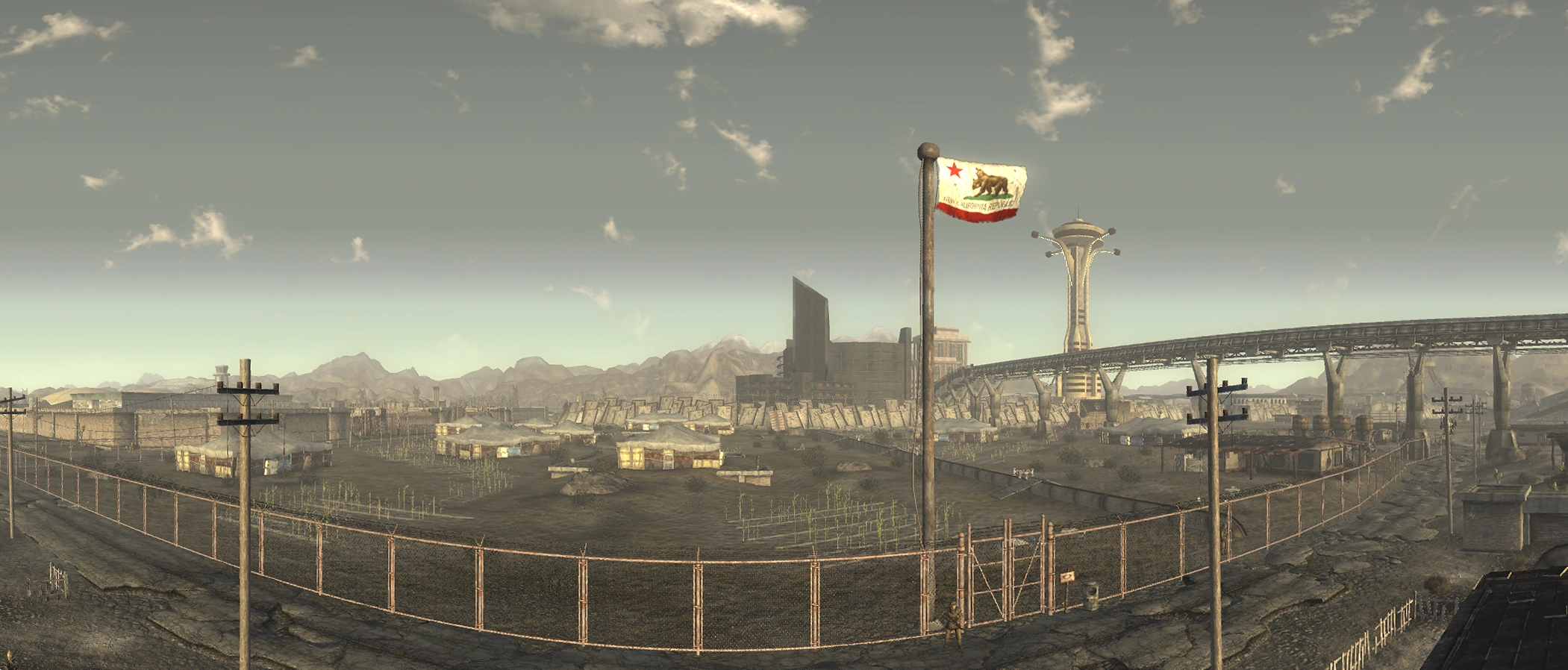 Less than a century after its founding, the Republic is a model example of post-apocalyptic success and good ethics. Steady expansion and development led to widespread political enfranchisement, the establishment of rule of law and its enforcement, security from threats within and without (to a reasonable degree), and good standards of living (above mere subsistence, at minimum) are a reality for its massive population of over 700,000 citizens.[7][8][9] The situation improved even further with the Mojave Campaign and securing the flow of electricity and water from Hoover Dam to the Republic. However, the protracted campaign has come at a cost.[5]