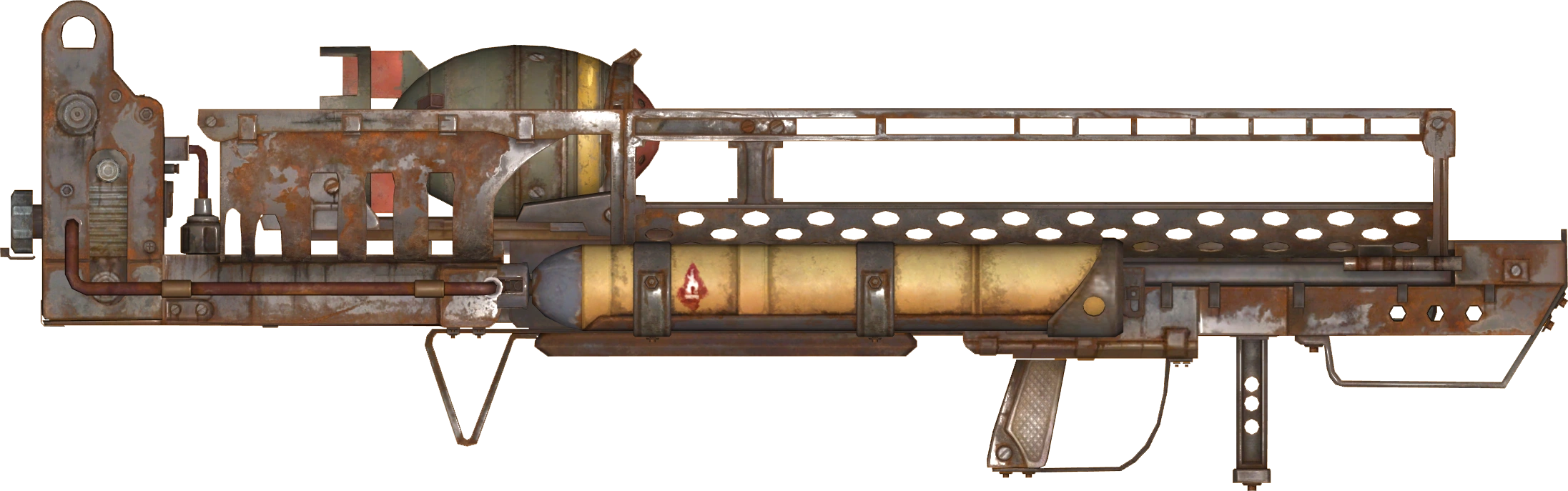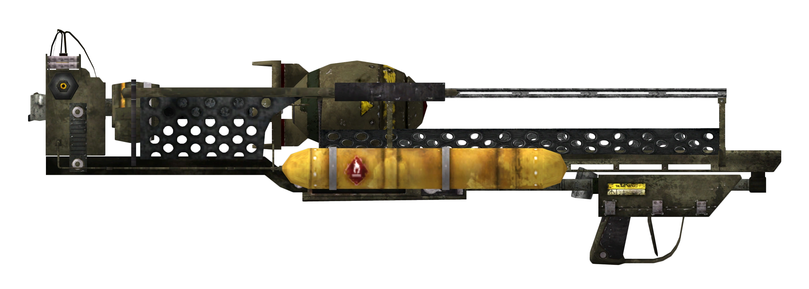 The C-23 Megaton and the Fat Man returned in Fallout: New Vegas, and with the Wild Wasteland trait, an unexploded atomic nuke called The One can be found slightly north-west of the Devil's Throat.