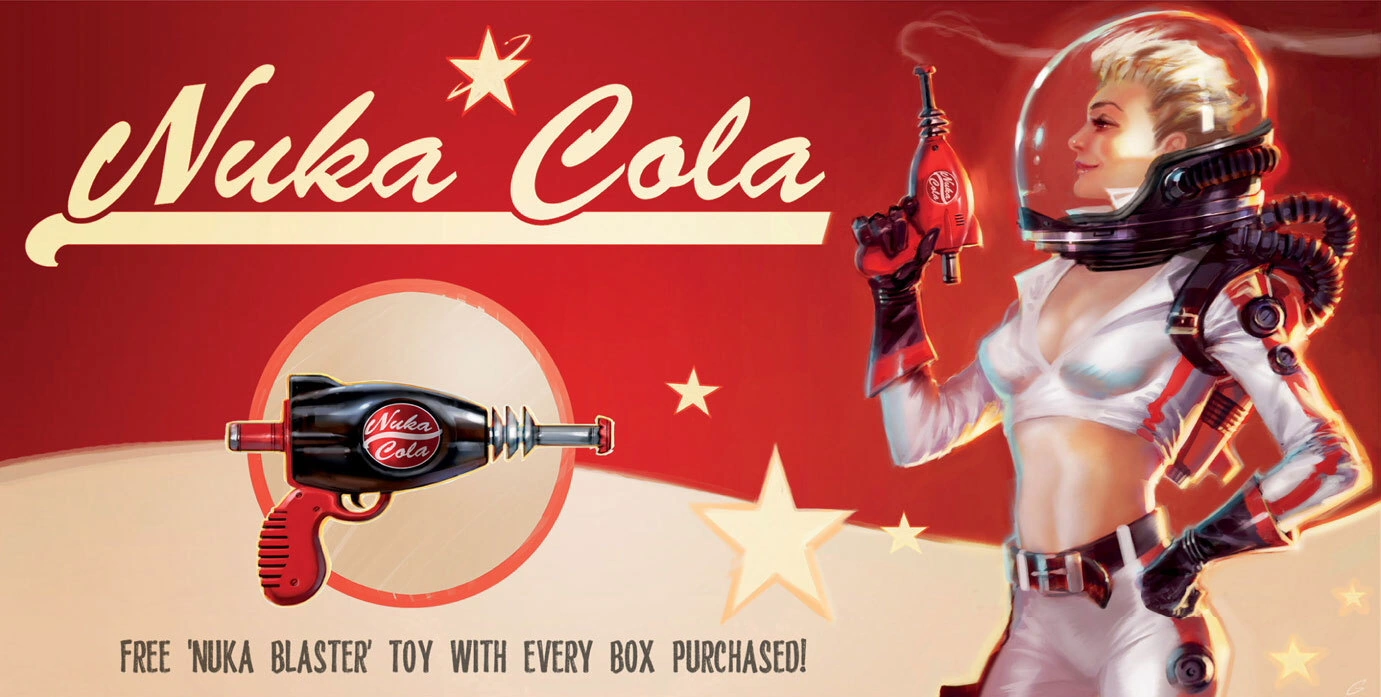 - An actual bottle of Nuka-Cola was distributed to attendees at the 2008 E3 fair, as a promotional item. Its design did not mimic the one available in the game.