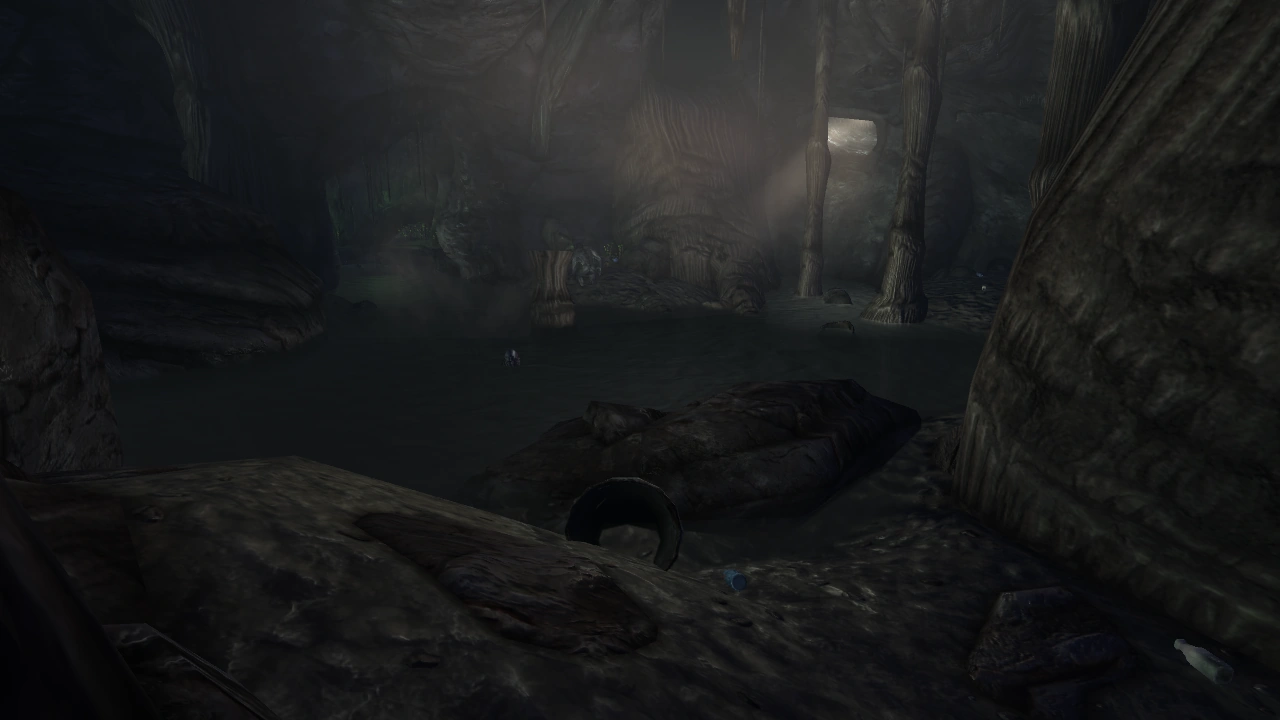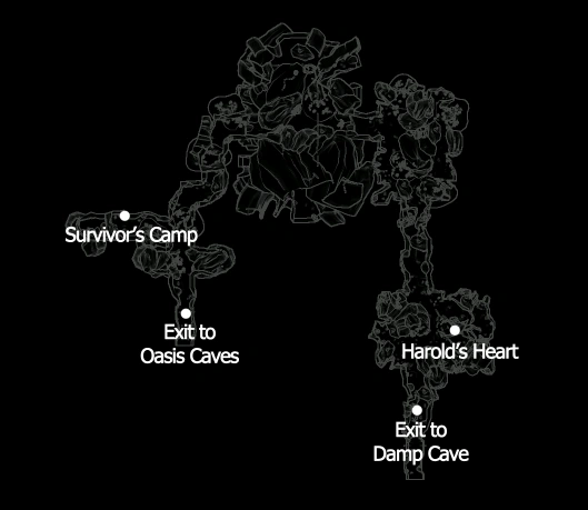 The lowest level of the caves below the Oasis is partially flooded. It also contains a survivor camp with the remains of a Great War survivor and contain a plethora of "nifty gizmos".[17][18] Of course, Harold's heart is also in these chambers.