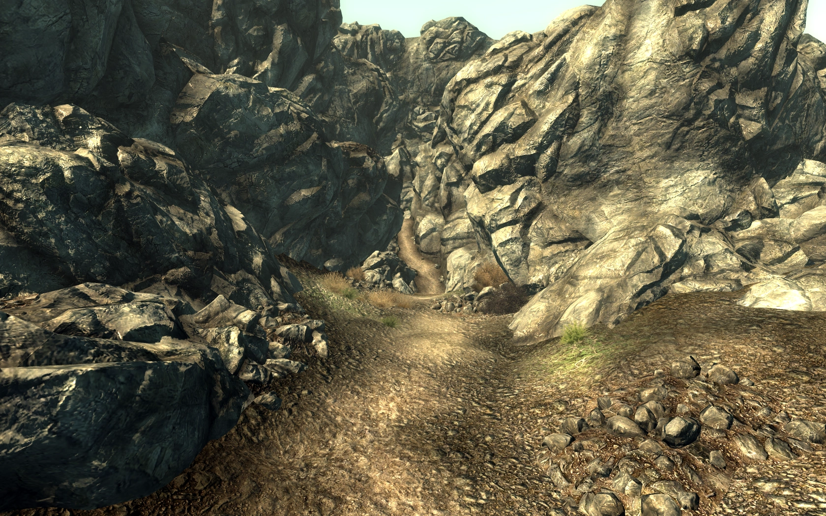 What is known as the Oasis was once just one of many mines scattered across the landscape of the United States. The extensive network of caves beneath it was used as impromptu shelter by the inhabitants of a nearby mining town from the bombs. As the time passed, the sheltered rocky vale was stripped of mining equipment and other installations, with only a handful of artifacts surviving to the 23rd century.[1]