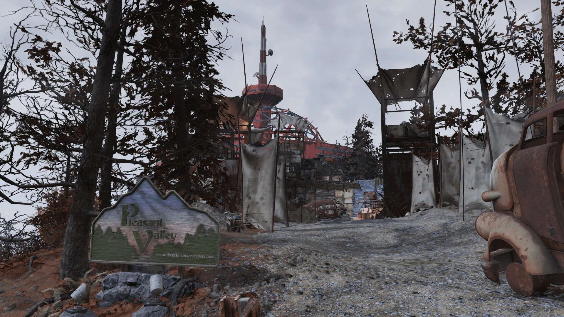 Once a luxurious resort catering to the wealthy denizens of the Eastern Seaboard, with a variety of skiing and hiking trails, as well as luxury spas and other amenities, the ski resort seemed set for greatness... Until it was cut off from civilization by the Great War. When the supplies ran out, the wealthy clientele realized they had no meaningful survival skills or tools to eke out an existence. The brutal mountain winter of 2077/78 took a great toll, forcing them to turn to savagery, cannibalism, and leading to the emergence of Appalachian raiders, led by the vicious David Thorpe, who quickly unseated Harland Mcclintock as the leader of the unpleasant folks of Pleasant Valley.