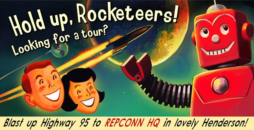 - REPCONN is most likely a reference to the real company PEPCON, which until the 1990s operated a space fuel production facility also in Henderson, Nevada, near Las Vegas. The PEPCON facility was destroyed in a fire and subsequent massive explosions of improperly stored Space Shuttle fuel oxidizer. The REPCONN experiment demonstration for RobCo that ended in disaster is likely a reference to this incident.