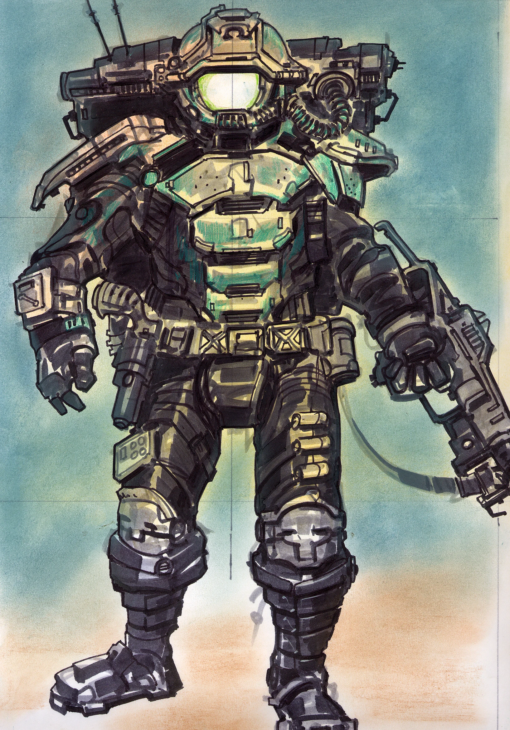 This armor appears to be a mining suit armored with several patches and a shoulder strap.