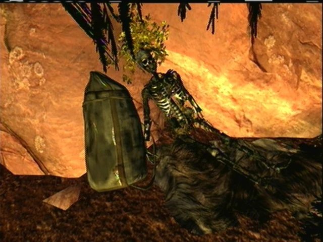 Moving to Stone Bones cave over the winter, he watched the Mexicans live in the canyon. They survived the winter with ease. What they did not survive was the coming of the savages. Vault 22 dwellers entered the canyon, driven out of their Vault by the fungal parasite infesting it. With over one hundred men and women, strong discipline, tactics, and firepower, the small band of Mexican survivors posed no threat to the dwellers. They hit the survivors' camp on February 11th, killing all the men and shooting down women and children that resisted. The remainder was taken to the main camp of the dwellers and penned in like livestock.[7]
