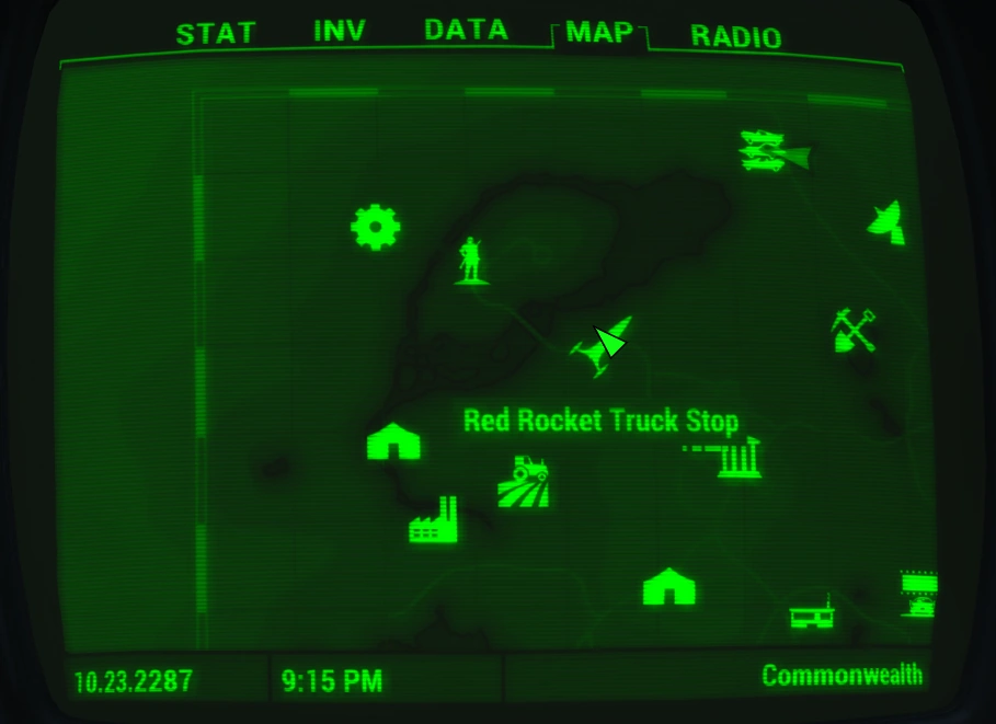 (Fallout 4 Vault Dweller's Survival Guide Map) - ↑ Red Rocket truck stop terminals; Red Rocket Terminal, Safe Storage