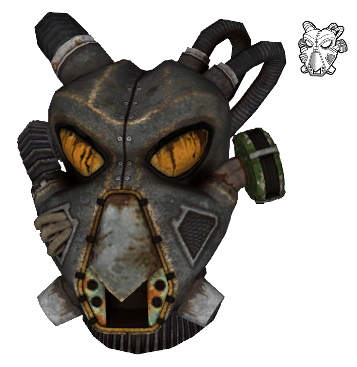 - As for looks in New Vegas, it is identical to its previous appearance in Fallout 2, except it has a rusted grimier look and the lenses appear to be cracked.
