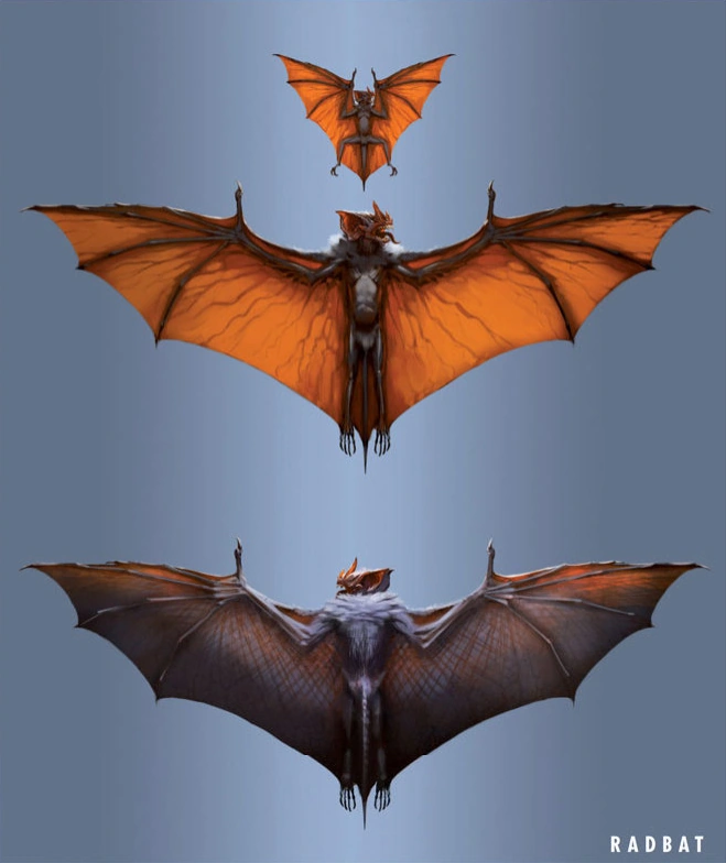 - This is first official appearance of mutated bats in any Fallout game. However, Fallout 4 originally had the concept for Radbats to appear, along with Van Buren's Mutant bat, but never made it into the game. It appears the concept was later developed into the scorchbeasts of Fallout 76.