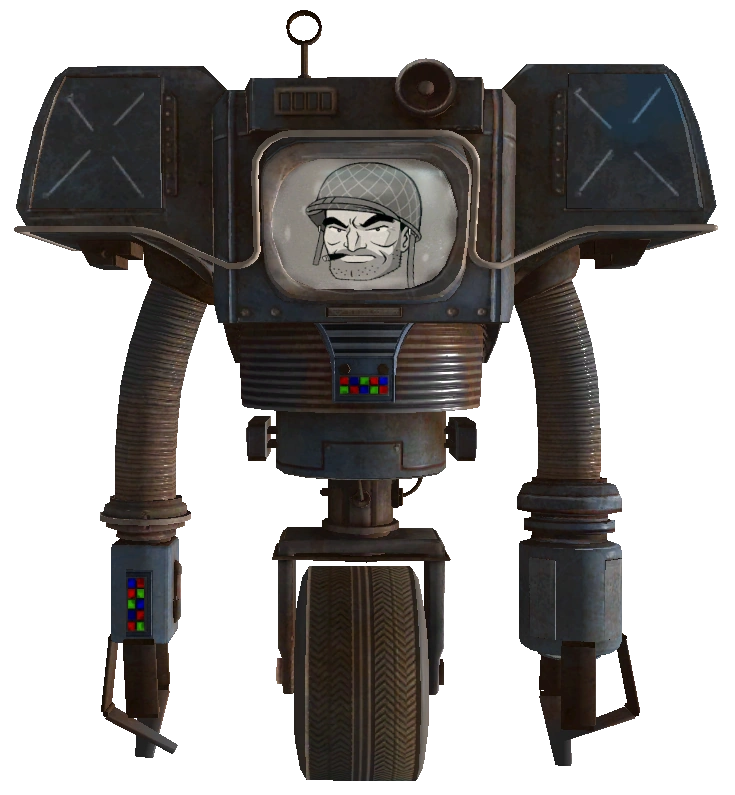 The only actual functioning Securitron copy made by Doctor 0 is Muggy, who is, well, not quite the upgrade 0 envisioned.[3]